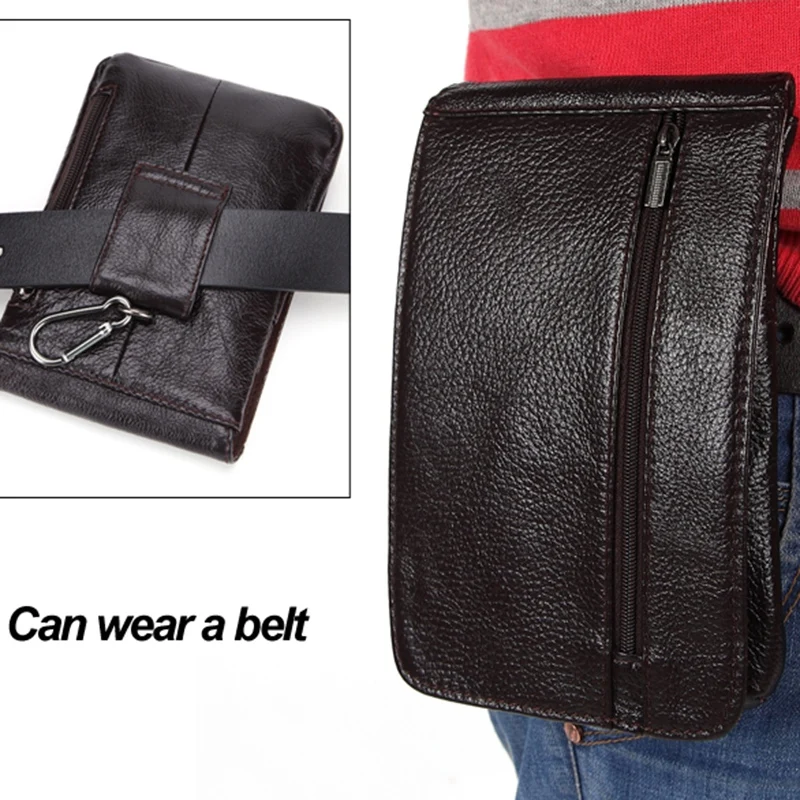 HOT SALE AUAU-MISFITS Leather Men's Pockets Mobile Phone Bag Wear Belt Bag Outdoor Mountaineering Bag